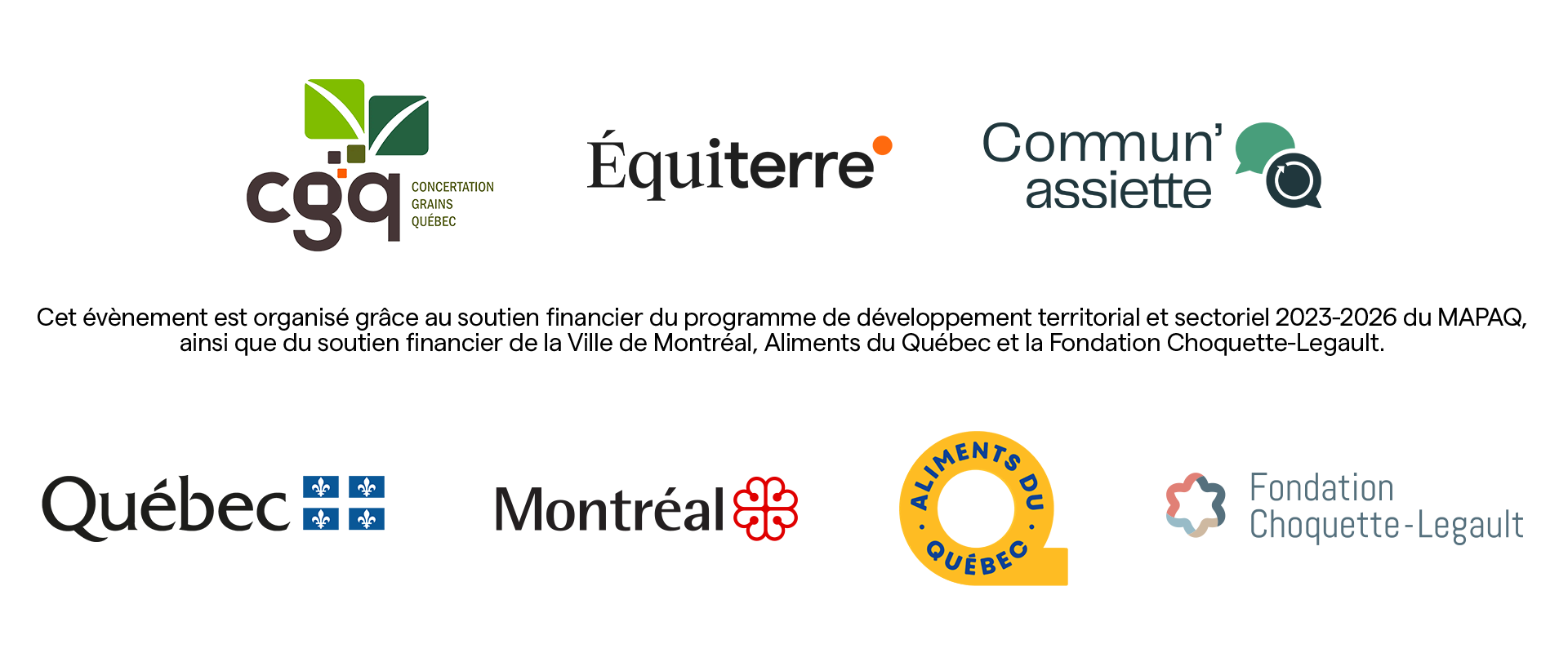 Au menu de la journée : conférences, atelier culinaire, panels, foire alimentaire, visites des cuisines du CHU Sainte-Justine… un programme complet pour échanger, réfléchir à des solutions pour sensibiliser les usager(-ère)s, imaginer des recettes à base de grains d’ici, faire des liens avec des producteur(-trice)s et encore bien plus.