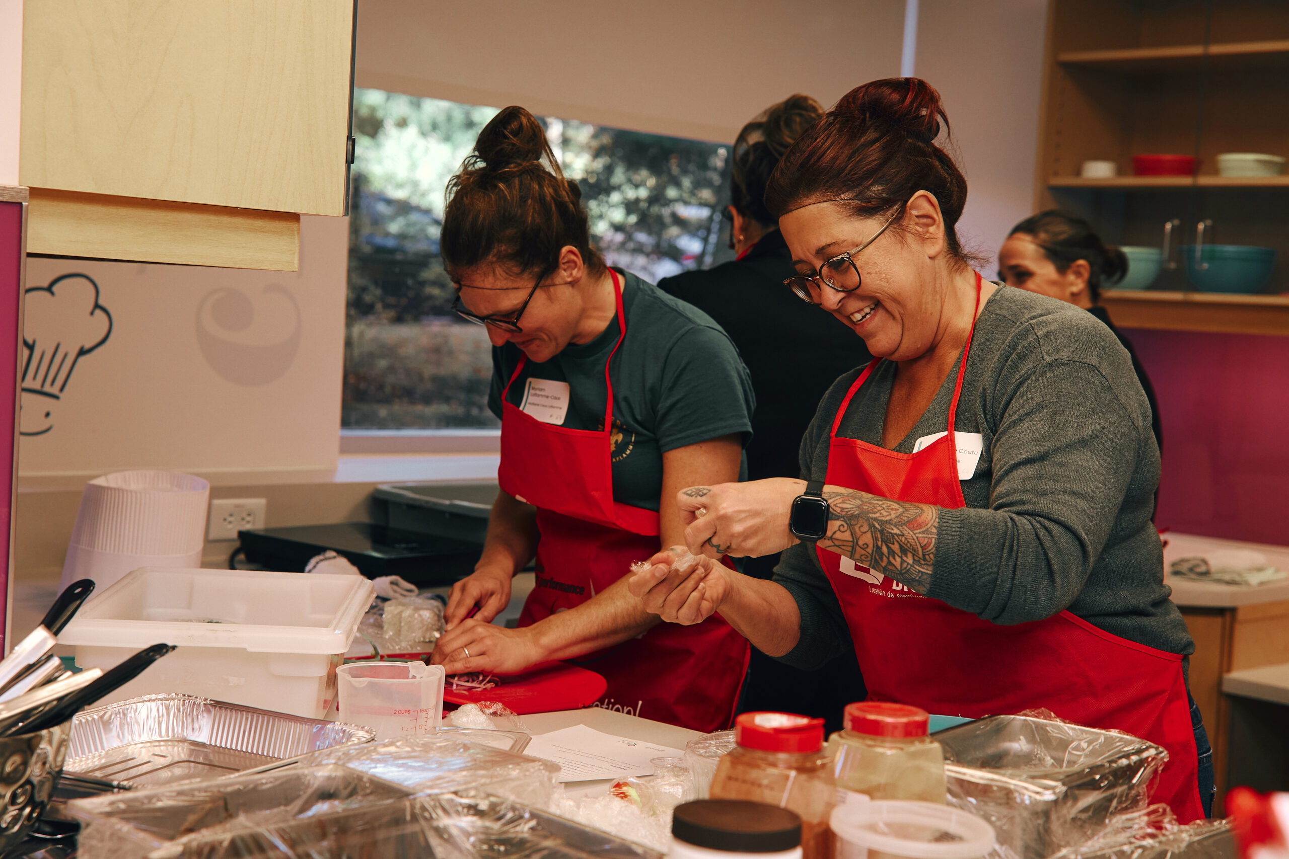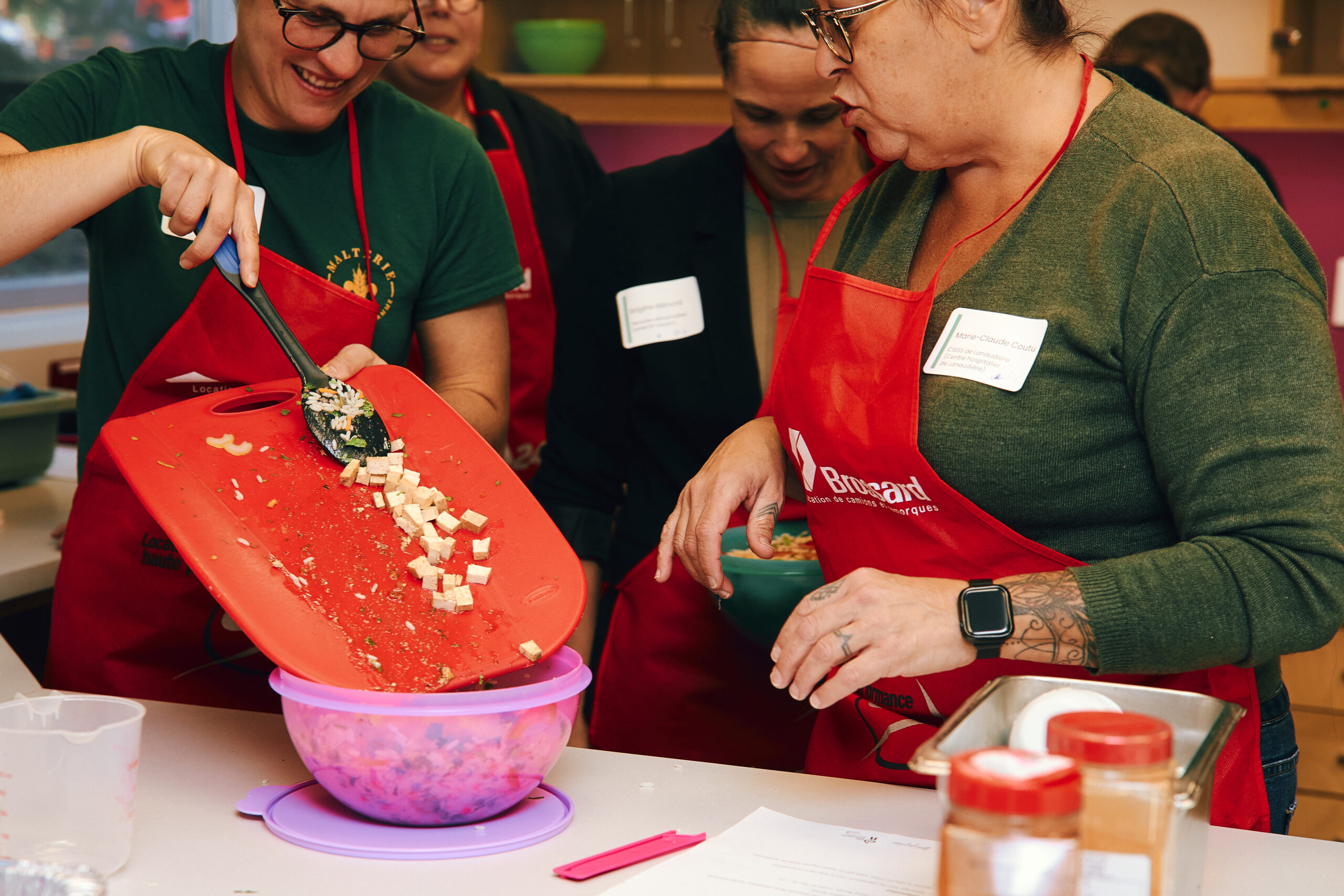 En matinée, pendant que 4 types d’institutions ont partagé leurs stratégies pour végétaliser leurs menus, plusieurs participant(e)s ont eu la chance de découvrir les cuisines du CHU Sainte-Justine pour y tester plusieurs recettes à base de légumineuses développées par l’institution. Le fameux brownie choco-banane et haricots rouges a été l’une des recettes réalisées dans le cadre de cet atelier culinaire animé par le CHU de Sainte-Justine en plus d’un hummus de pois jaune à l’orientale, d’une salade au tofu à l’asiatique et d’un chili sin carne (sans viande).