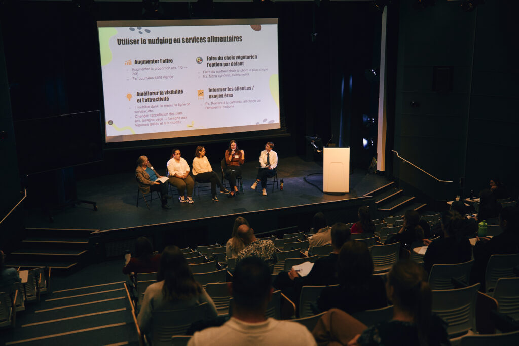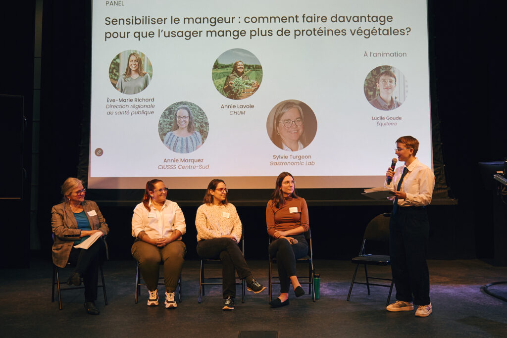 En après-midi, le panel « Sensibiliser le mangeur : comment faire pour que l’usager(-ère) mange plus de protéines végétales? » organisé par Commun’assiette a rassemblé quatre expertes :
